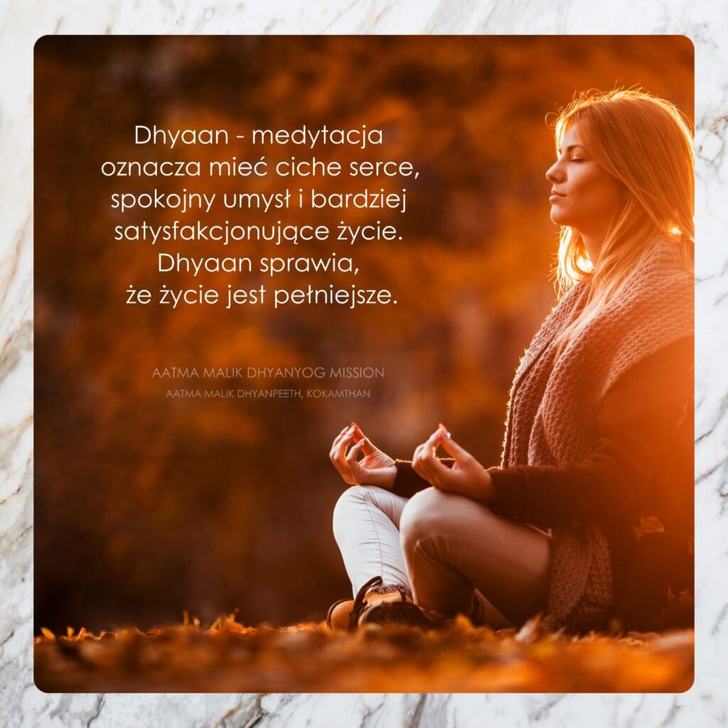 - Medytacja daje Szczęście zwane Sat-Chit-Ananda (prawda-świadomość-szczęśliwość).